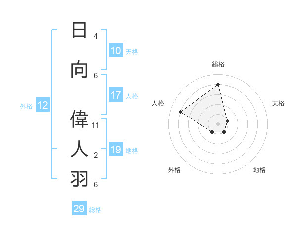日向 偉人羽さんを姓名の画数から五運を鑑定