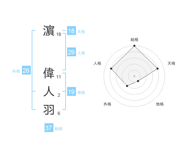 濵 偉人羽さんを姓名の画数から五運を鑑定