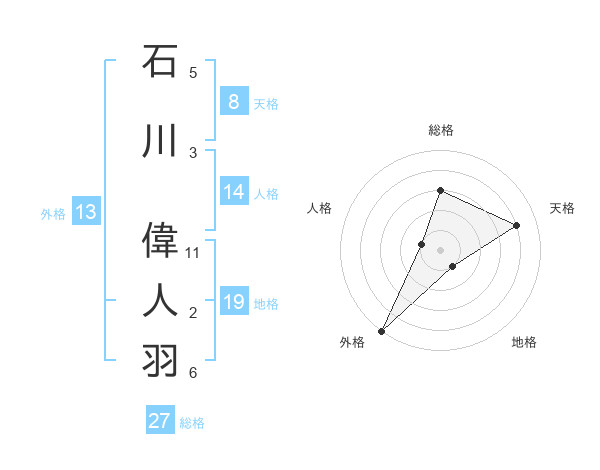 石川 偉人羽さんを姓名の画数から五運を鑑定