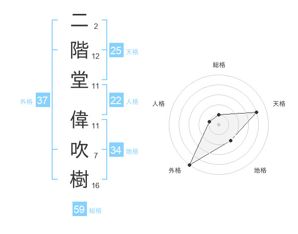 二階堂 偉吹樹さんの外格は37画の5点!