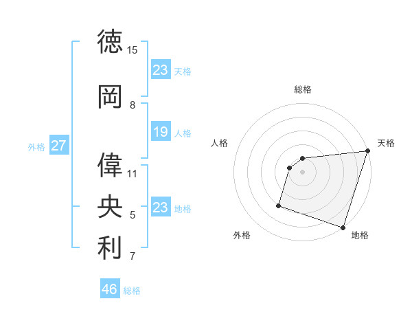 徳岡 偉央利さんの天格は23画の5点!