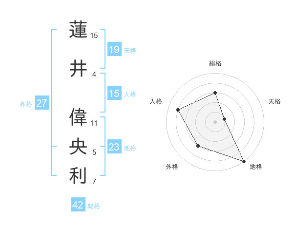 蓮井 偉央利さんを姓名の画数から五運を鑑定