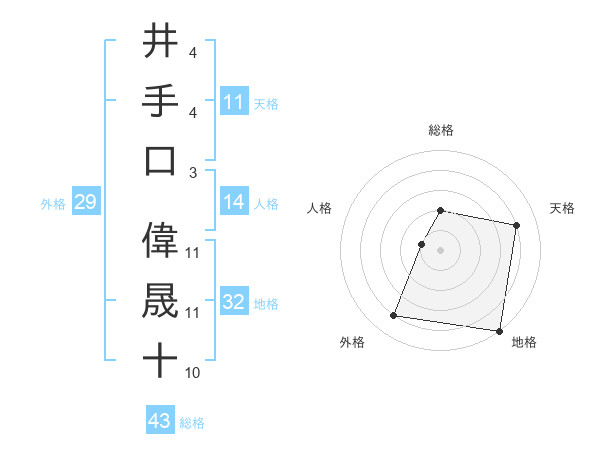 井手口 偉晟十さんを姓名の画数から五運を鑑定