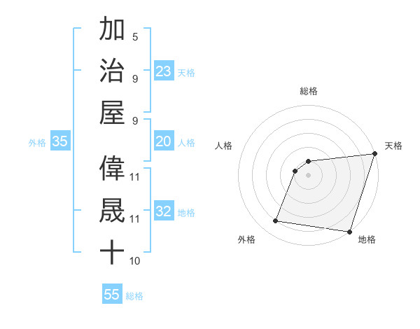 加治屋 偉晟十さんの天格は23画の5点!