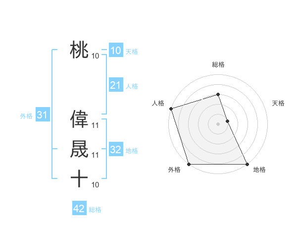 桃 偉晟十さんを姓名の画数から五運を鑑定