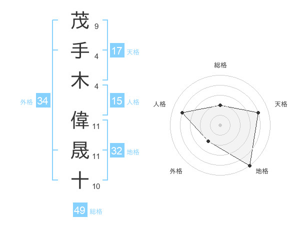 茂手木 偉晟十さんの総格は49画の2点!