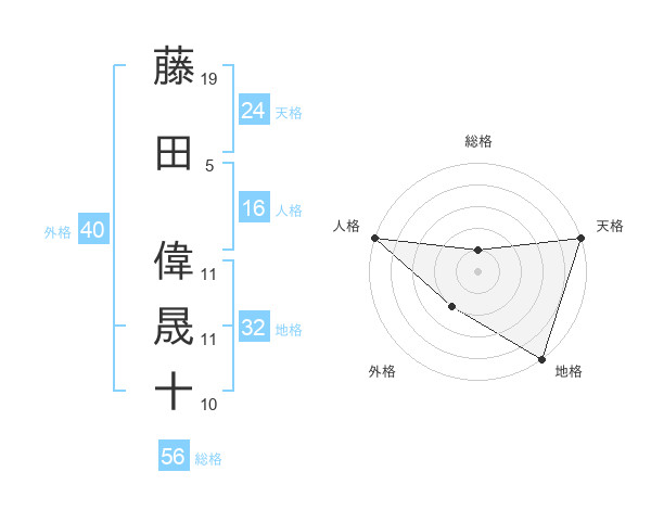 藤田 偉晟十さんを姓名の画数から五運を鑑定