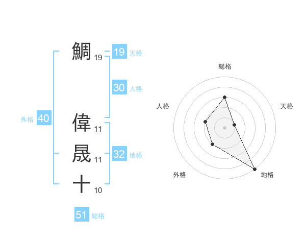 鯛 偉晟十さんを姓名の画数から五運を鑑定