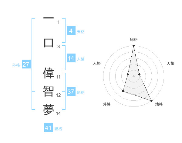 一口 偉智夢さんを姓名の画数から五運を鑑定