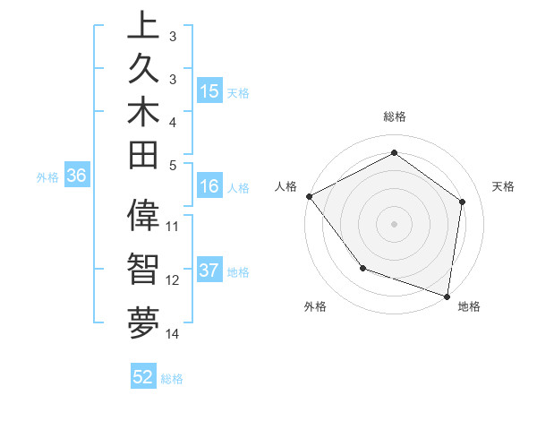 上久木田 偉智夢さんを姓名の画数から五運を鑑定