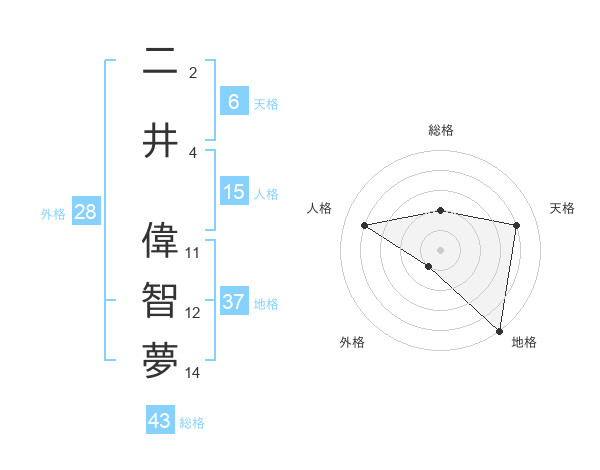 二井 偉智夢さんを姓名の画数から五運を鑑定