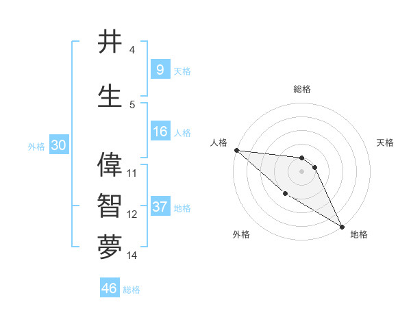 井生 偉智夢さんを姓名の画数から五運を鑑定