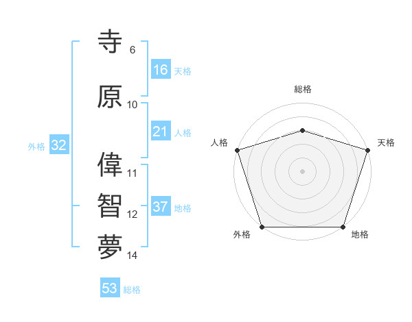寺原 偉智夢さんの人格は21画の5点!