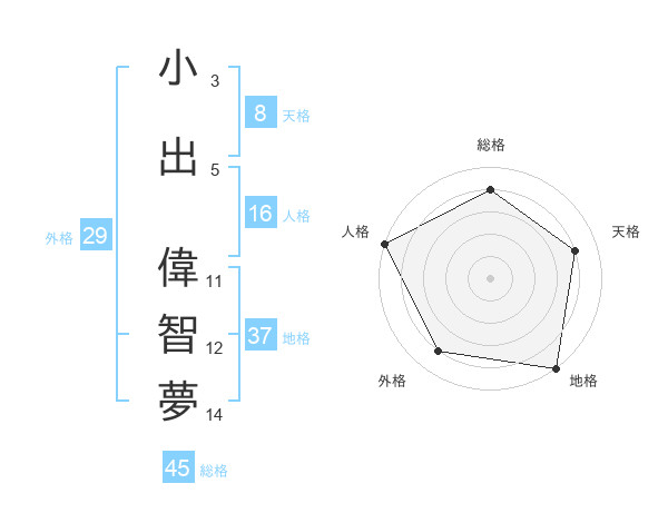 小出 偉智夢さんの地格は37画の5点!