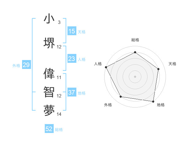 小堺 偉智夢さんの総格は52画の4点!