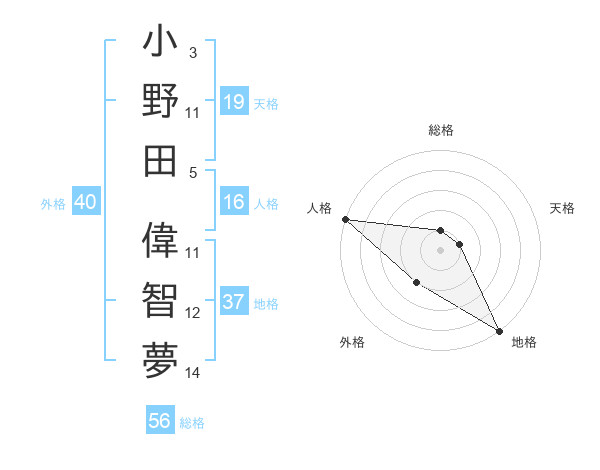 小野田 偉智夢さんを姓名の画数から五運を鑑定