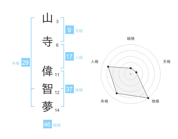 山寺 偉智夢さんを姓名の画数から五運を鑑定