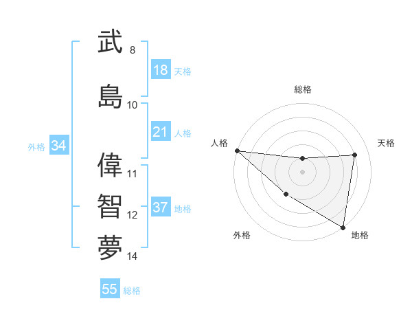 武島 偉智夢さんの地格は37画の5点!