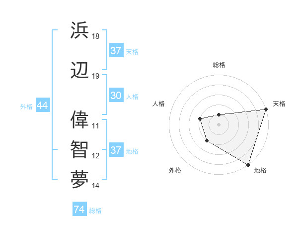 浜辺 偉智夢さんを姓名の画数から五運を鑑定