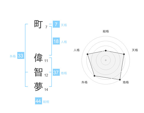 町 偉智夢さんを姓名の画数から五運を鑑定
