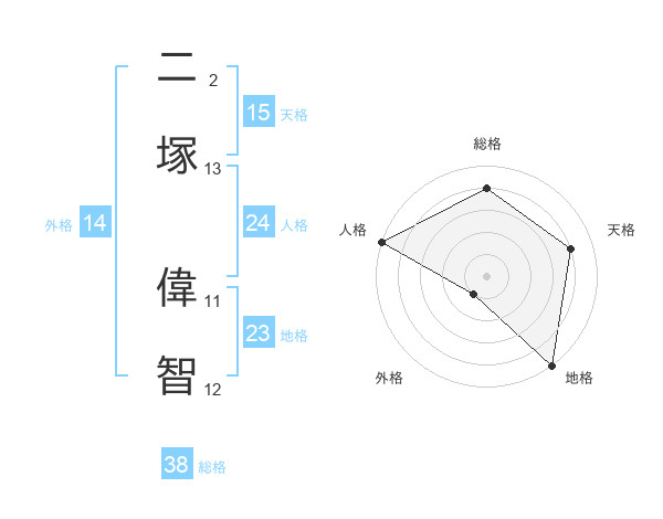 二塚 偉智さんの総格は38画の4点!