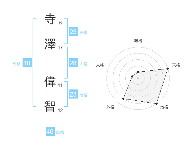 寺澤 偉智さんの天格は23画の5点!