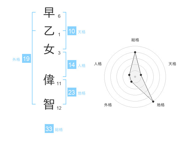 早乙女 偉智さんを姓名の画数から五運を鑑定