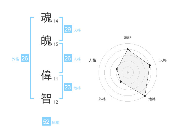 魂魄 偉智さんの総格は52画の4点!