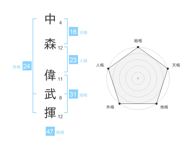 中森 偉武揮さんを姓名の画数から五運を鑑定