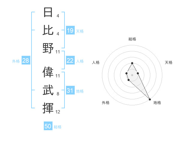 日比野 偉武揮さんを姓名の画数から五運を鑑定