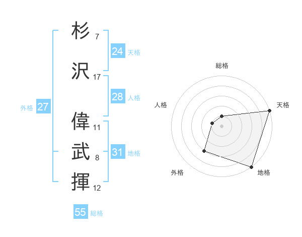 杉沢 偉武揮さんの天格は24画の5点!