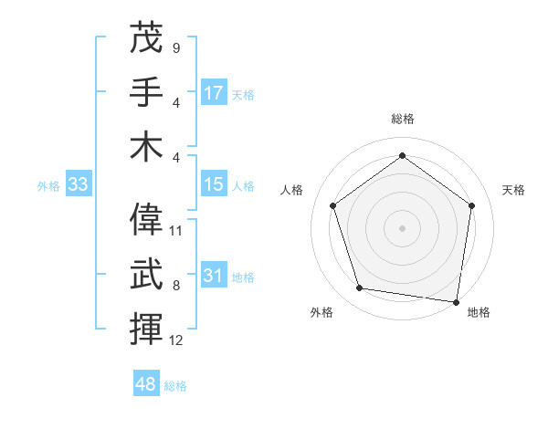 茂手木 偉武揮さんを姓名の画数から五運を鑑定
