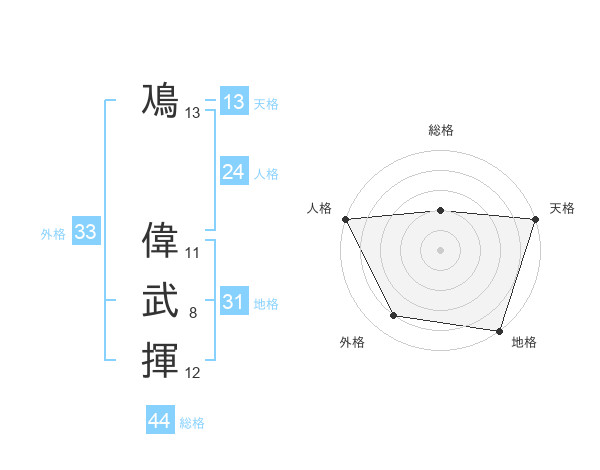 鳰 偉武揮さんを姓名の画数から五運を鑑定