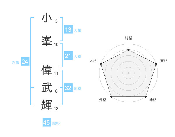 小峯 偉武輝さんの天格は13画の5点!