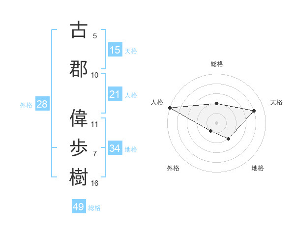 古郡 偉歩樹さんを姓名の画数から五運を鑑定