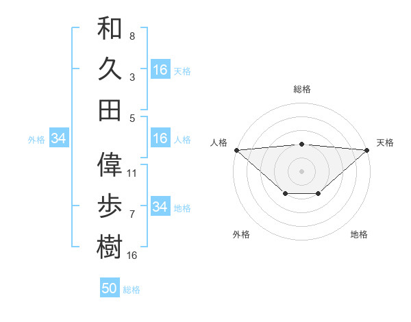 和久田 偉歩樹さんの総格は50画の2点!