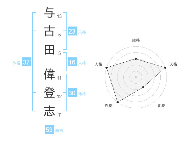 与古田 偉登志さんを姓名の画数から五運を鑑定