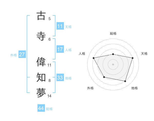 古寺 偉知夢さんの天格は11画の4点!