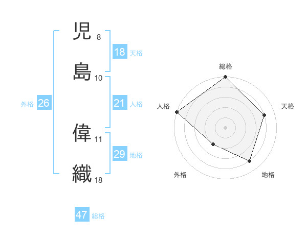 児島 偉織さんの総格は47画の5点!