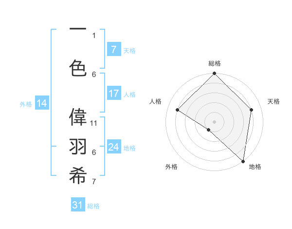 一色 偉羽希さんを姓名の画数から五運を鑑定