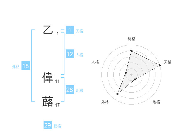 乙 偉蕗さんの総格は29画の4点!