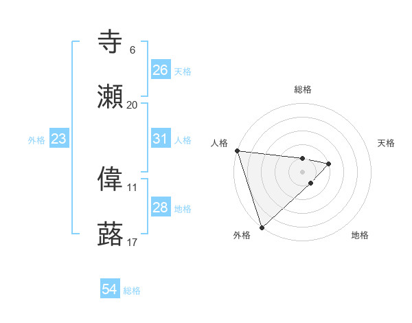 寺瀬 偉蕗さんの外格は23画の5点!