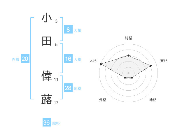 小田 偉蕗さんの天格は8画の4点!