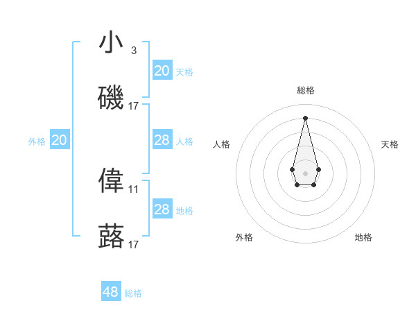 小磯 偉蕗さんの天格は20画の1点!