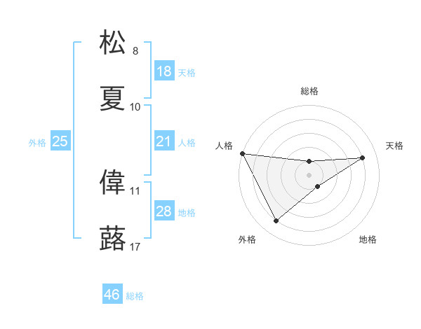 松夏 偉蕗さんを姓名の画数から五運を鑑定