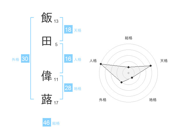 飯田 偉蕗さんの天格は18画の4点!