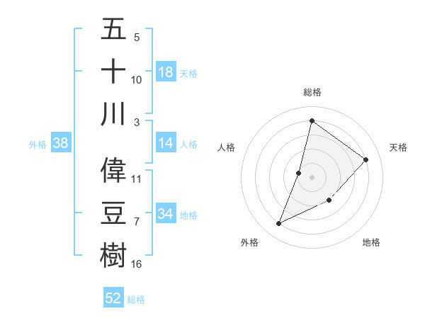 五十川 偉豆樹さんの総格は52画の4点!