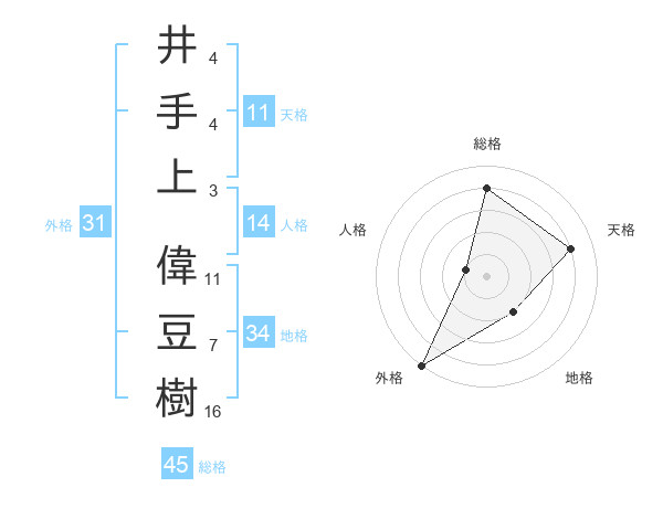 井手上 偉豆樹さんを姓名の画数から五運を鑑定