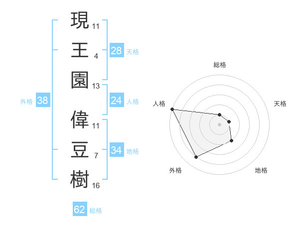 現王園 偉豆樹さんを姓名の画数から五運を鑑定