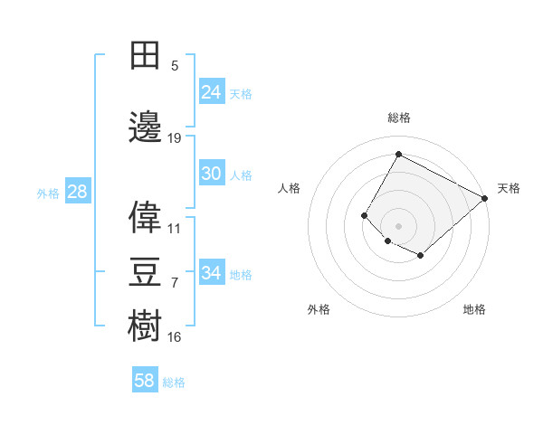 田邊 偉豆樹さんを姓名の画数から五運を鑑定